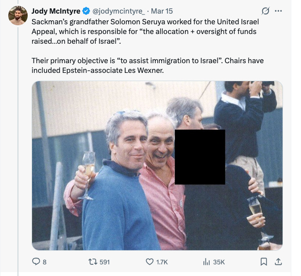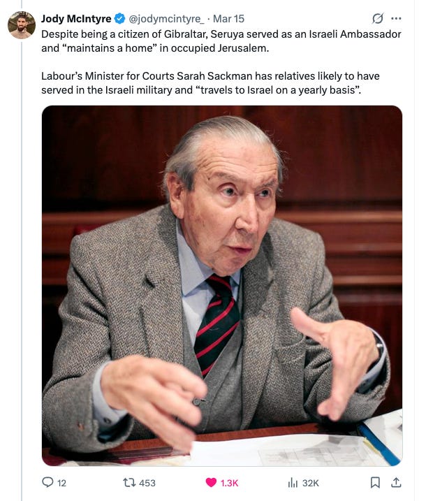 “Sarah Sackman is Jewish. She has a mixed Ashkenazi (Eastern European Jewish descent on her father’s side) and Sephardi (on her mother’s side, with family roots tracing back through Spain, Italy, Morocco, and Gibraltar) heritage.